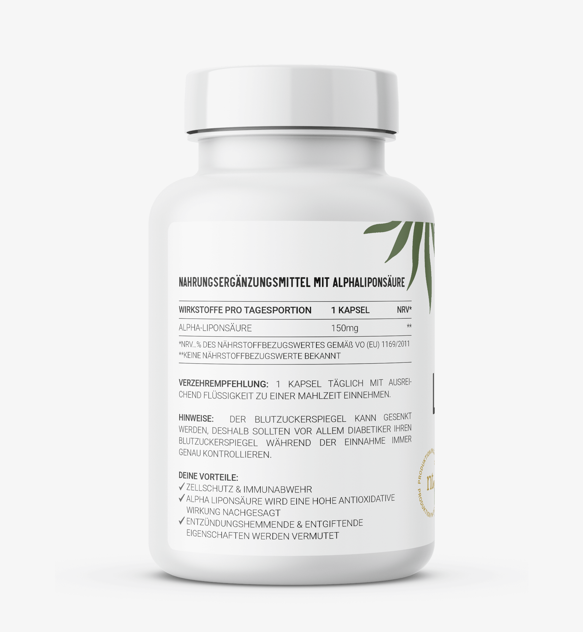 Reismehl, Alphaliponsäure, Hydroxypropylmethylcellulose (Kapselhülle)